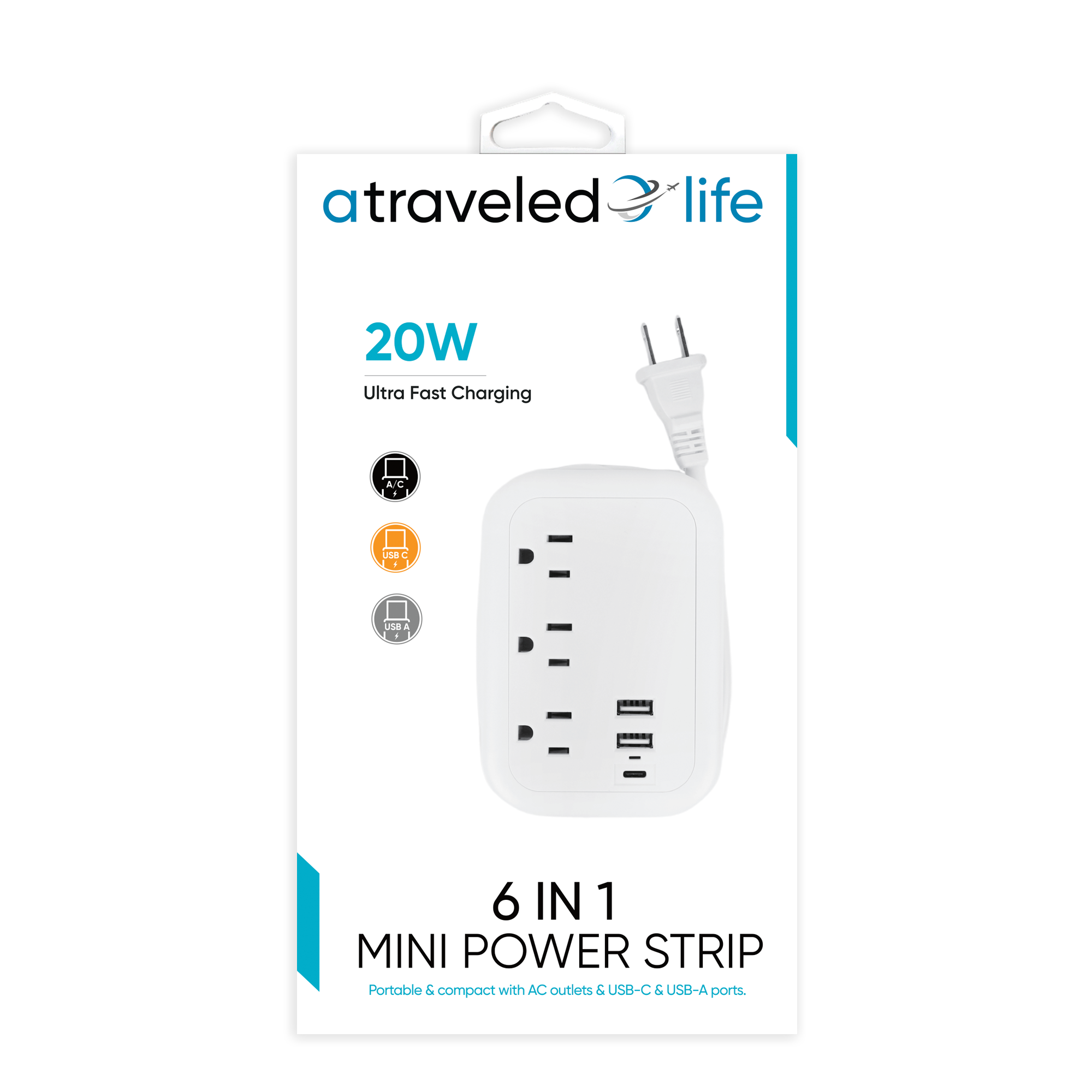 Portable USB-C Power Strip Flat Plug