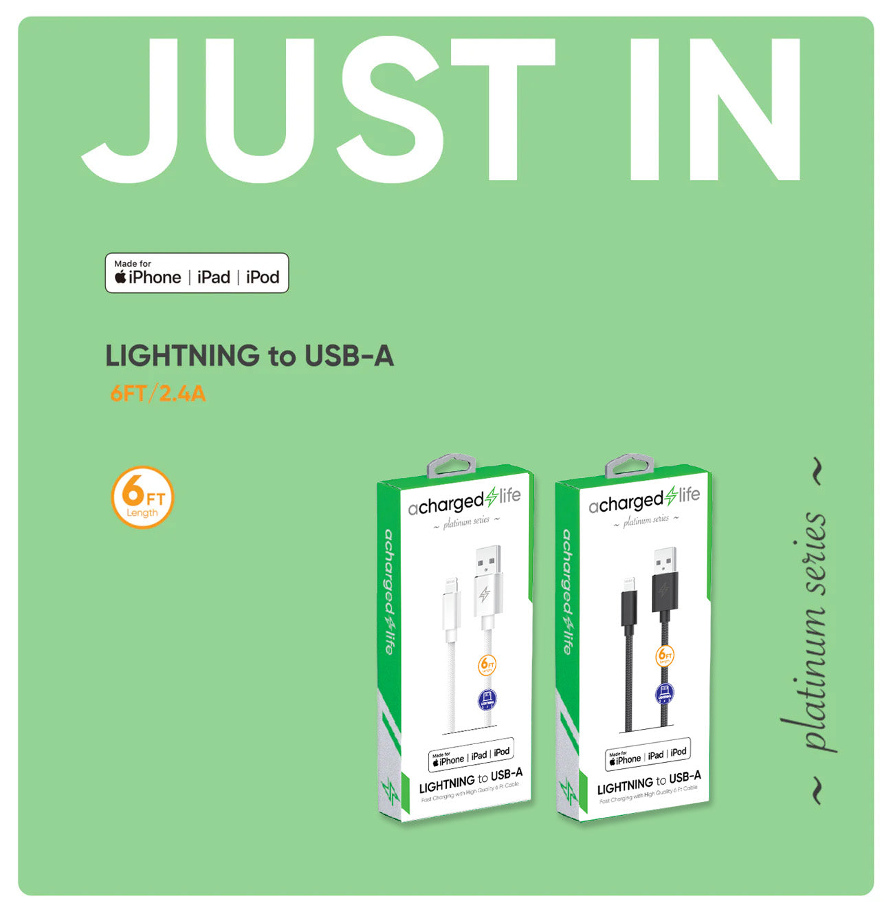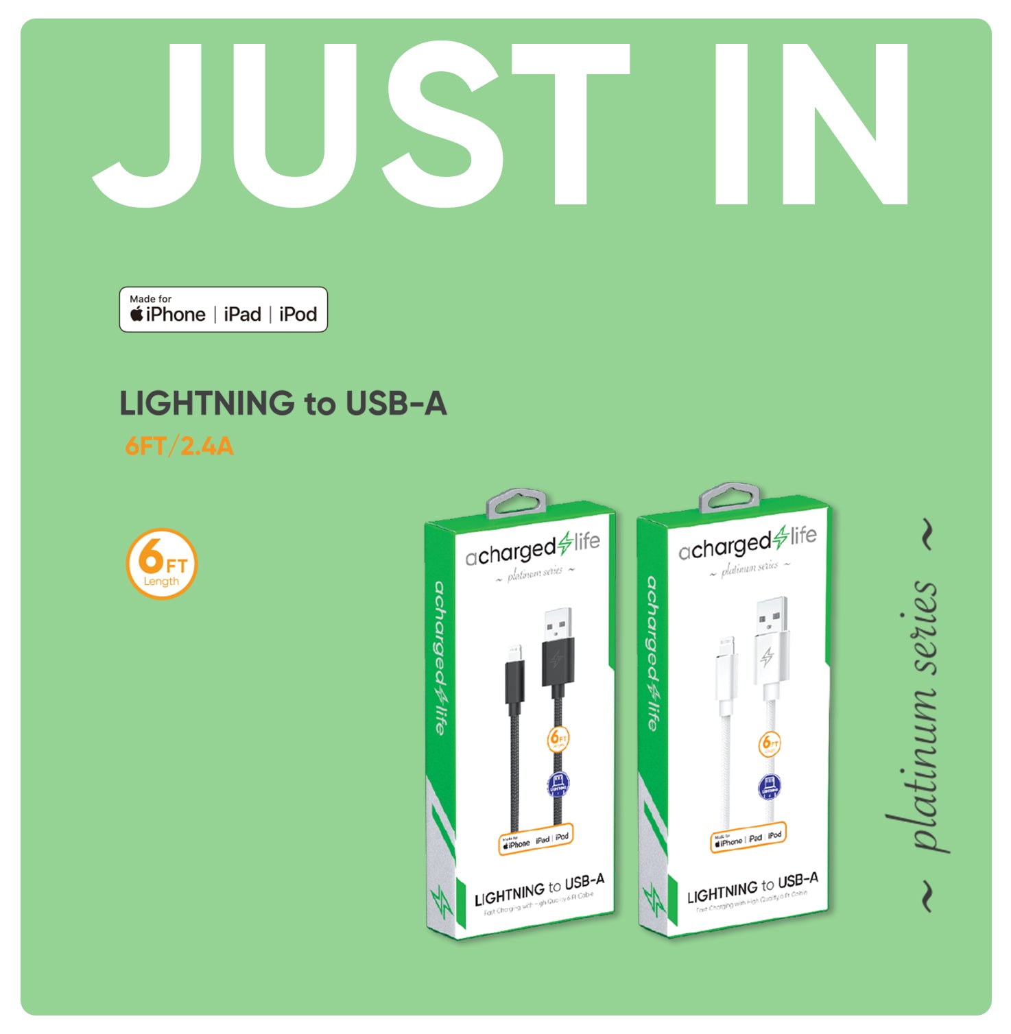Charging Cable Lightning 6Ft (MFI) White